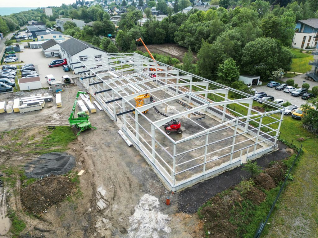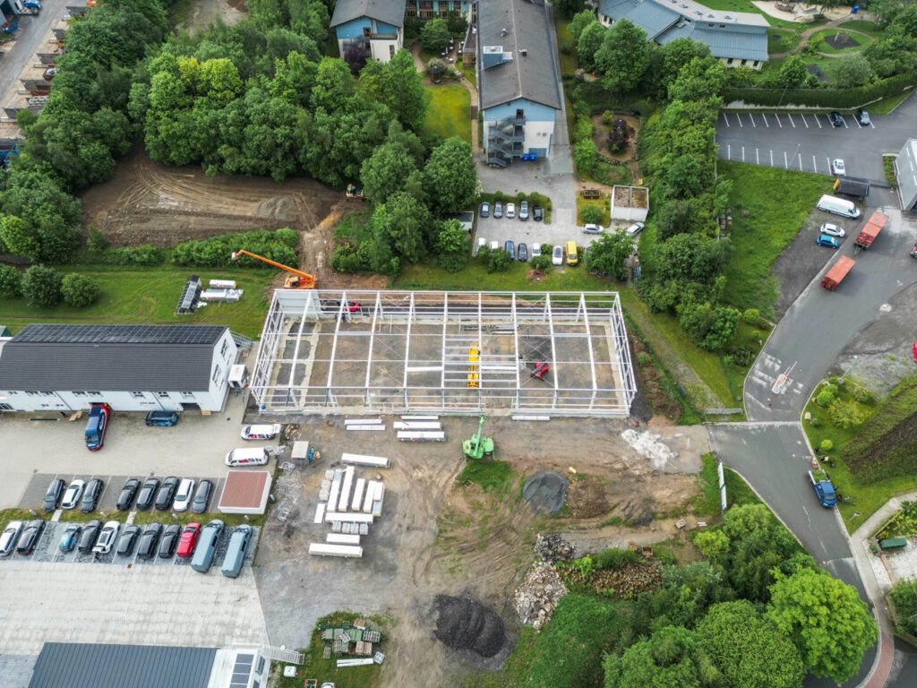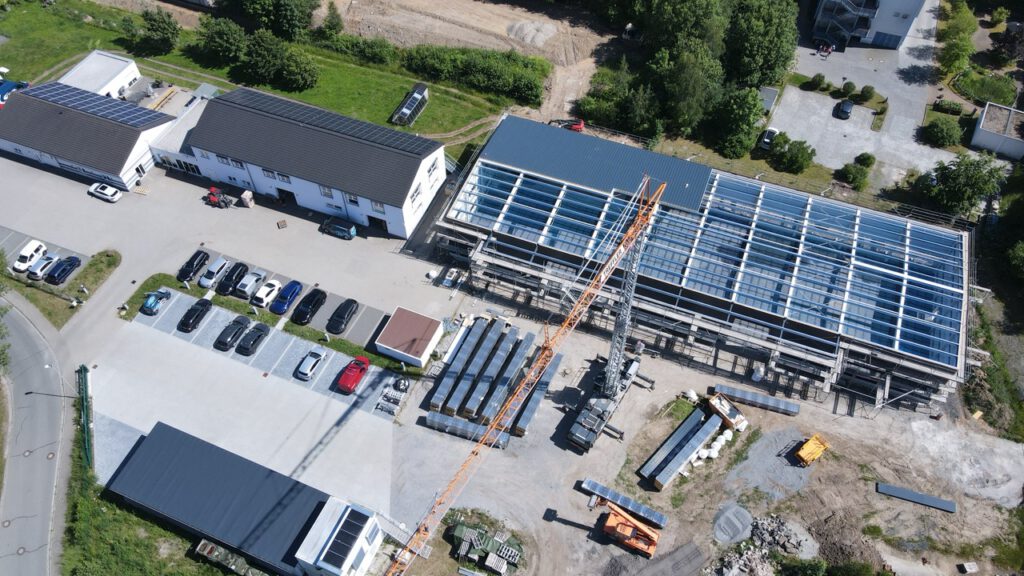 Diesen besonderen Meilenstein möchten wir noch einmal Revue passieren lassen und euch auf die Reise mitnehmen – von den ersten Fundamentarbeiten bis zur fertigen Produktionshalle.